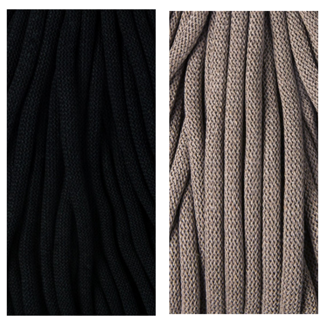 You’ll work with two full rolls of 9mm braided macramé cord, perfect for creating sturdy baskets with soft texture and clean stitches. The kit includes three bases (10", 8″ and 6″) so you can make a larger basket, medium and a smaller one that nests neatly inside. A 12mm crochet hook is also included, making this kit truly all-in-one.