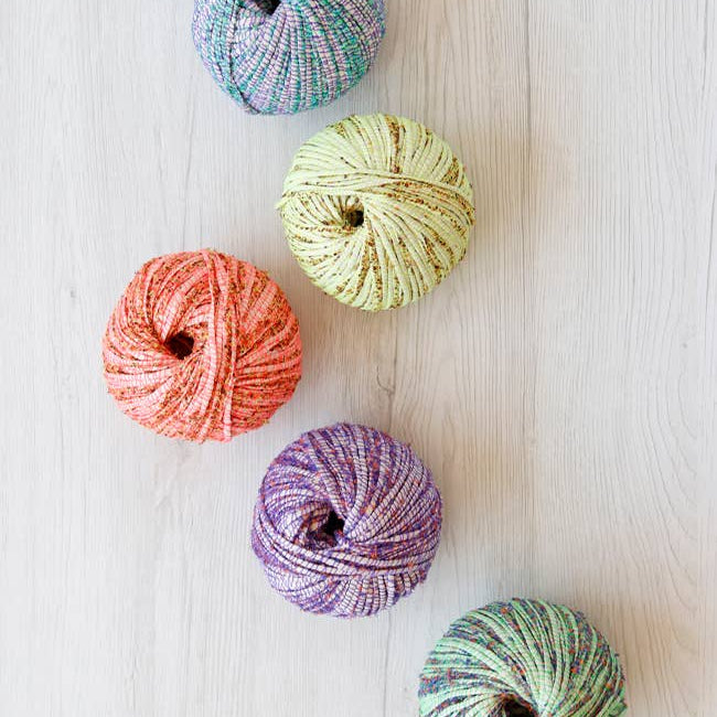 Pop yarn bases its splendor on contrasting colors and fluorescent touches. Furthermore, it’s adorned with a thin bouclé yarn that makes it delightfully wavy and quite contemporary. The base is made of recycled cotton. The special twisting used manages to perfectly blend all these elements for a one-of-a-kind effect. Pop yarn is the quintessence of our textile district, Prato, where yarns and fabrics have been produced for centuries: artisan manufacturing, experience, the willingness to experiment, and a large portion of Italian style. Pop is a yarn that expresses itself at its best with simple projects because it is so spectacular that it is enough on its own. Perfect for knitting and crochet, but also for macrame and hand weaving.