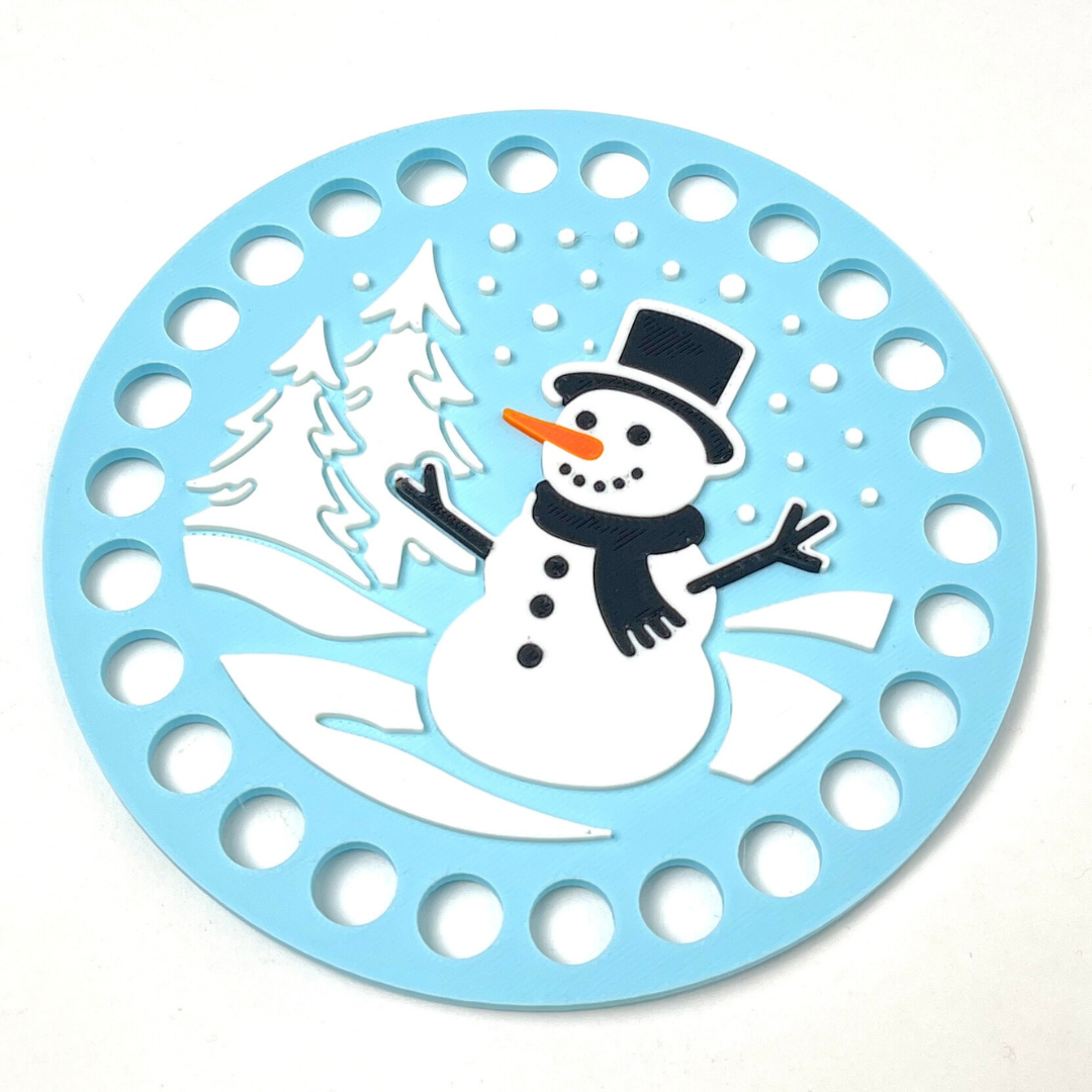 Snowman Scene Base for Basket Coiling and Crochet 5-inch